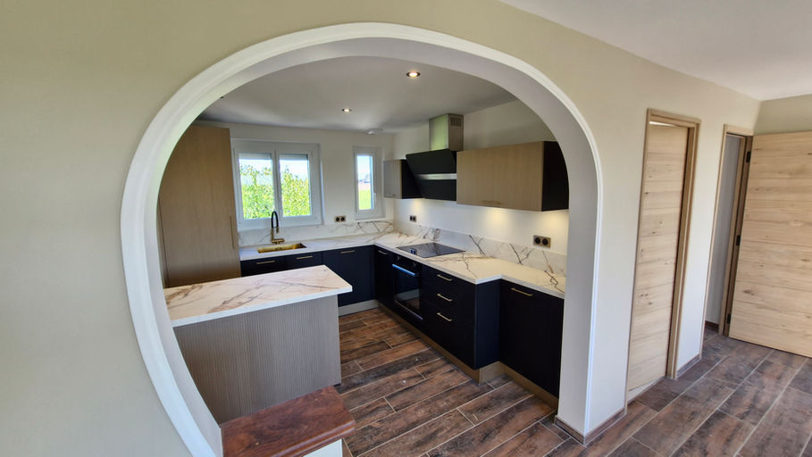 La conception sur mesure et l’installation d’une cuisine haut de gamme, réalisée en collaboration avec notre cuisiniste partenaire.